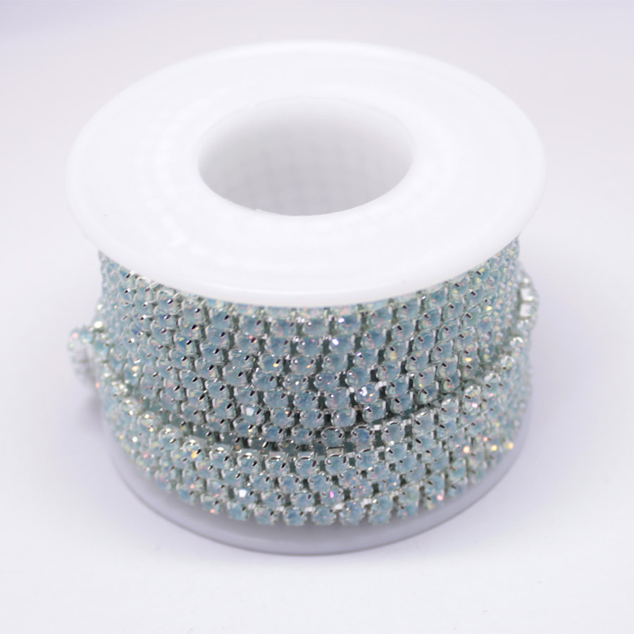 | Цепь стразовая стекло/металл опаловый мятный/серебро |