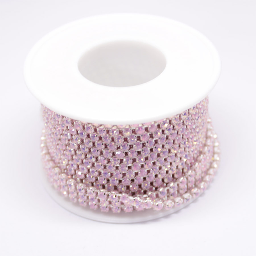 | Цепь стразовая стекло/металл опаловый розовый/серебро |